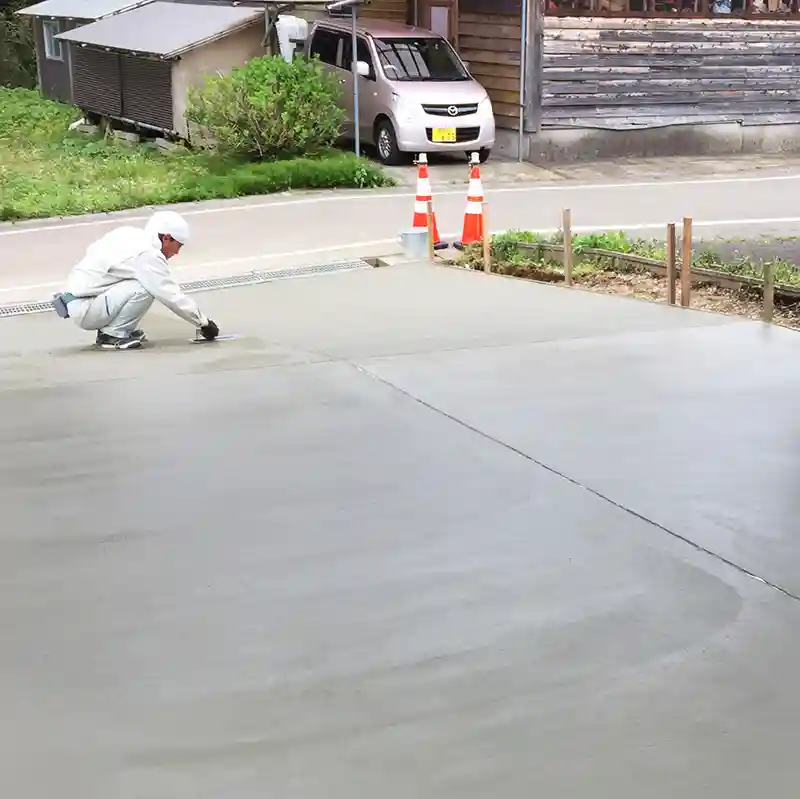 標準的な2台分の駐車場(30㎡程度)であれば、打設から仕上げまで約3〜5日間です。季節、天候により変動します。